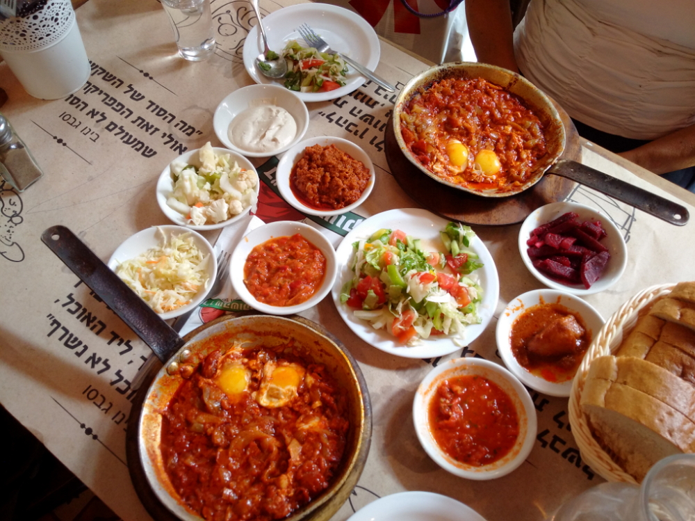 Шакшука — традиционное израильское блюдо, которое представляет собой яйца, жаренные в соусе из томатов, лука, острого перца и приправ. В Dr. Shakshuka ее подают на сковороде, немного потрепанной и, кажется, попавшей сюда прямиком с чердака какой-нибудь очаровательной еврейской бабушки. К шакшуке обязательно приносят хлеб, которым можно собрать остатки вкуснейшего соуса. В этом очаровательном кафе в районе Яффо шумно, весело и по-израильски уютно. На полу — плитка с ярким орнаментом, на каменных стенах — старые фотографии, газетные вырезки, афиши, а с потолка свисают десятки потертых ламп, фонарей и подсвечников.