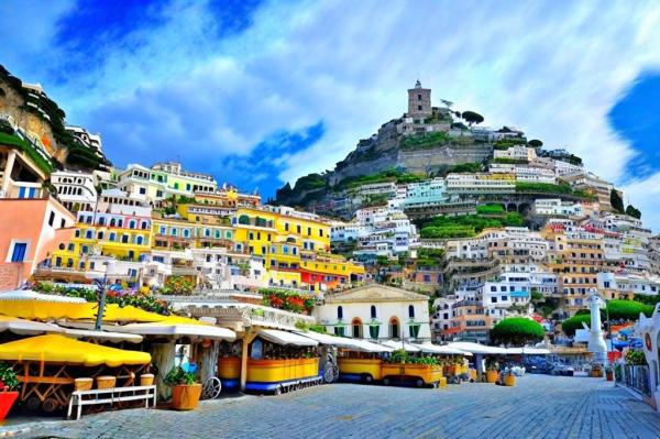 Арендовав автомобиль, отправляйтесь в живописный город Сорренто, идеально подходящий для умиротворенного пляжного отдыха. Символом Сорренто являются лимоны, поэтому буквально на каждом шагу здесь встречаются лимонные деревья, а воздух пропитан освежающим цитрусовым ароматом. Днем вы можете посетить главные достопримечательности города: Кафедральный собор, храм Святого Франциска и базилику Святого Антонио, а вечера лучше всего проводить в местных ресторанчиках, где звучит живая музыка. Именно в Сорренто производят известный ликер Лимончелло, он продается во всех магазинах и сувенирных лавках города, поэтому вопроса о том, что привезти на память о Сорренто, у вас точно не возникнет.